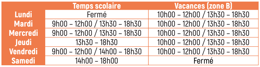 HORAIRES D'OUVERTURES POUR TOUT PUBLIC